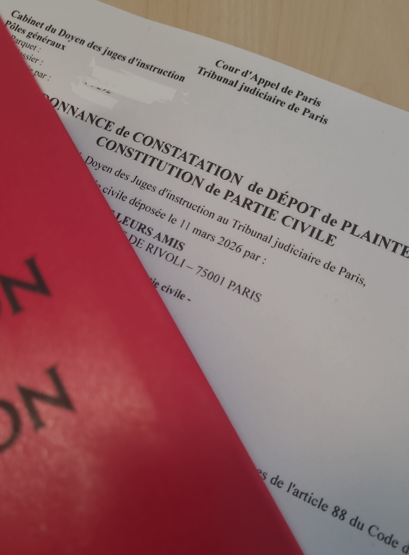 Concernant la plainte avec constitution de partie civile contre Alain MINC, le doyen des juges d'instruction de Paris a pris une première ordonnance recevant et actant le dépôt de plainte avec constitution de partie civile en application de l'article 88 du code de procédure pénale.